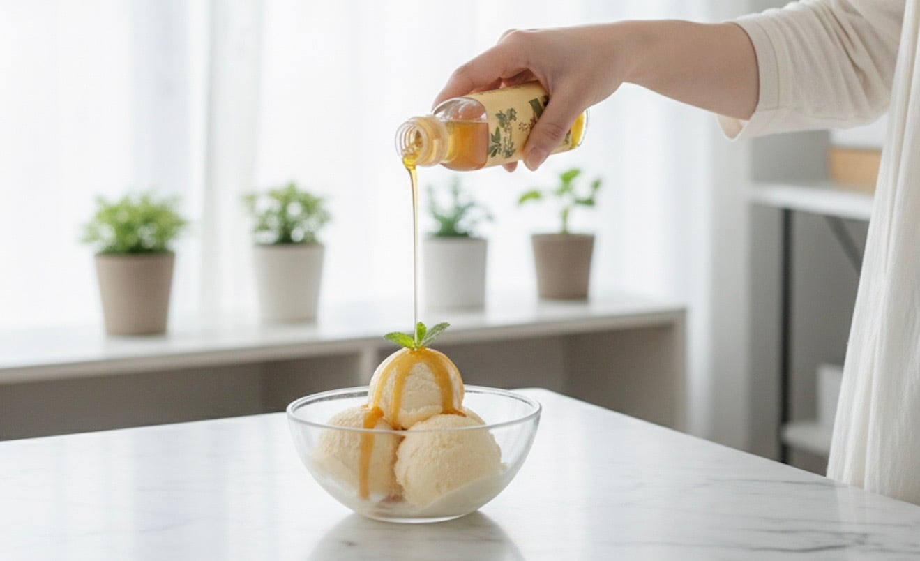 • 多様な用途: パンケーキやヨーグルト、アイスクリームにかけるのはもちろん、紅茶やコー